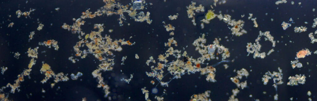 Le visuel de la couverture est de Geoffroy Mathieu : il s’agit d’un arbre tamaris situé sur les rives du ruisseau (à lire dans la Gazette : TAMARIS, Tamarix gallica. remplaçons l’usine par des tamaris !). Le panorama du verso quant à lui, est une photographie de Bulat Sharipov : un échantillon de l’eau du ruisseau récolté à Notre-dame-Limite et vu au microscope.