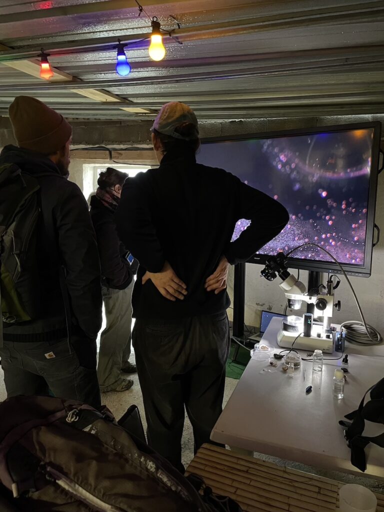Comment un laboratoire peut aussi être l’occasion d’assembler des communautés de l’étang ? Comment les différentes recherches menées, artistiques, scientifiques, sociologiques, citoyennes, peuvent-elles être plastiques elles-mêmes et s’infléchir les unes les autres ? Comment la recherche elle-même peut-elle permettre aux riverain·es de l’étang de se constituer en société concernée avec les chercheur·euses ? Comment la science participative peut-elle faire émerger de nouvelles questions et de nouvelles manières d’enquêter, plus proches du type de savoirs et de pratiques de recherche dont nous avons besoin pour mieux s’accorder aux exigences de notre époque ?