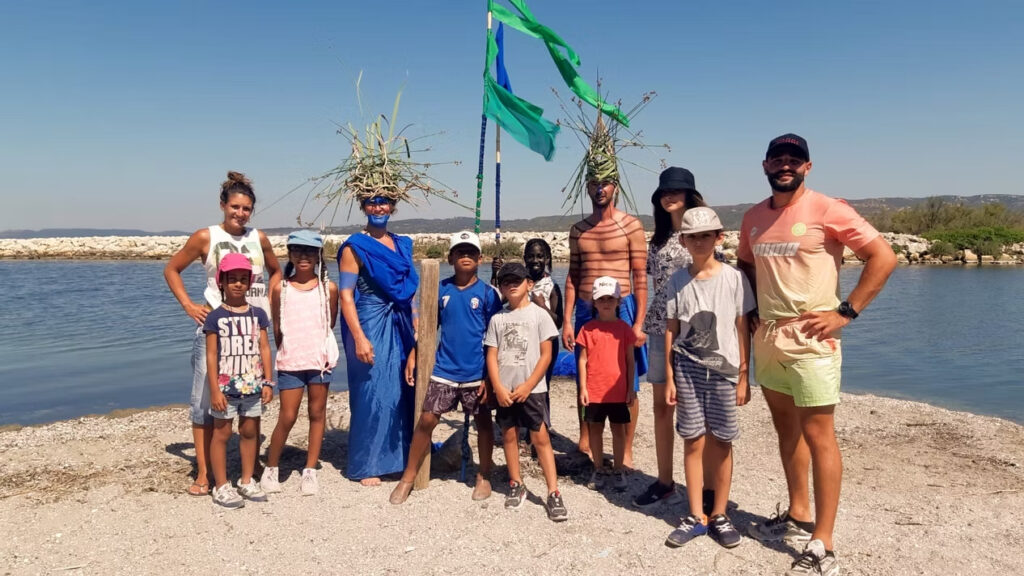 Produisant de multiples histoires à partager sous forme de performances, d’ateliers et d’installations plastiques, le collectif SAFI et son radeau mettent en récits les milieux marins de l’étang et leurs interactions avec le vivant, les activités humaines, l’industrialisation…