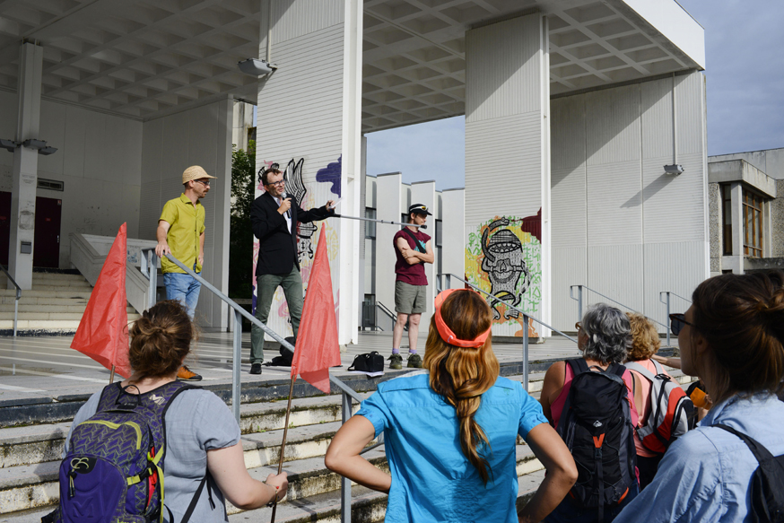 Ce voyage collectif se fabrique avec nous tous, en compagnie des artistes du collectif Safi, Geoffroy Mathieu, Bertrand Stofleth, Christophe Galatry, Yes we camp et les Arpenteurs d’images de Ciné mémoire. En nous confiant des indices et des outils de navigation, ils nous proposent de révéler des points de vue et des situations, pour traverser et s’installer dans l’esprit des lieux…