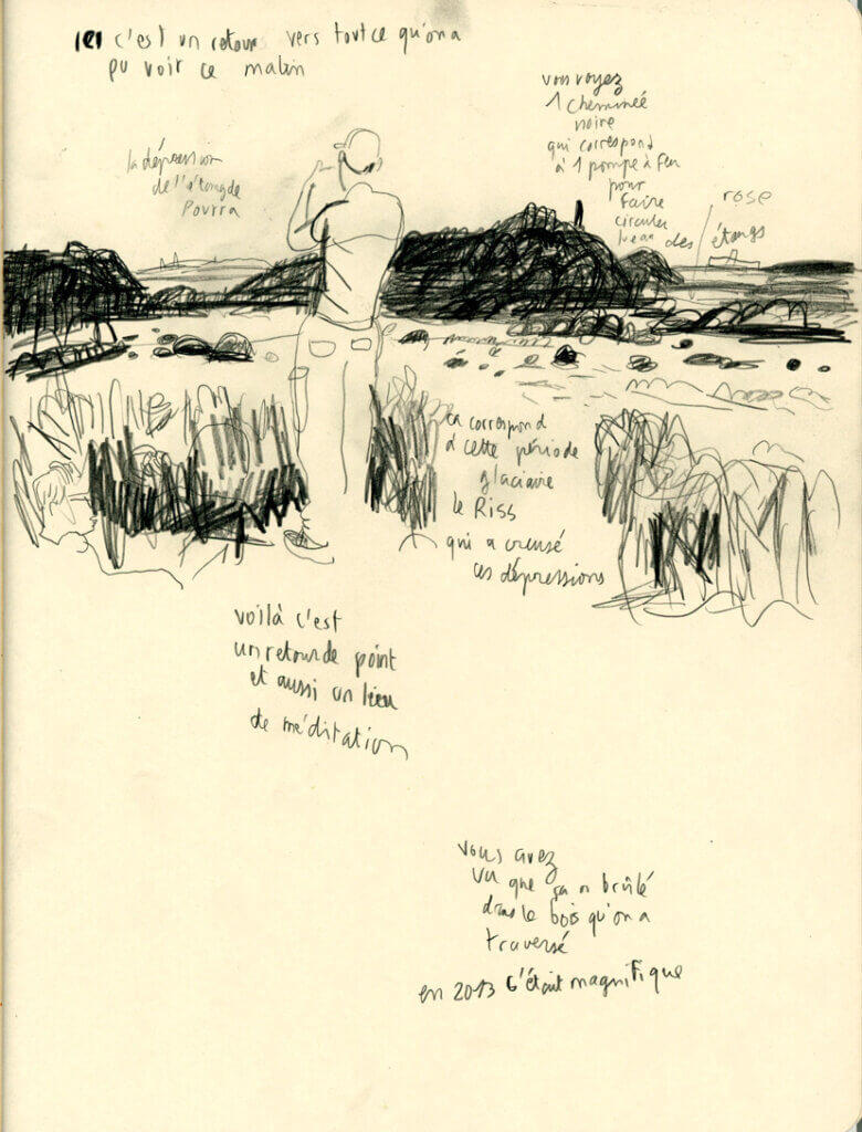 Au fil de la marche nous mangerons le paysage avec le collectif SAFI, partagerons les diagnostics thérapeutiques de Laurent Petit et les décryptages habités de Nicolas Memain. Au détour du chemin des habitants nous accueillerons et partageront leurs savoirs des lieux.