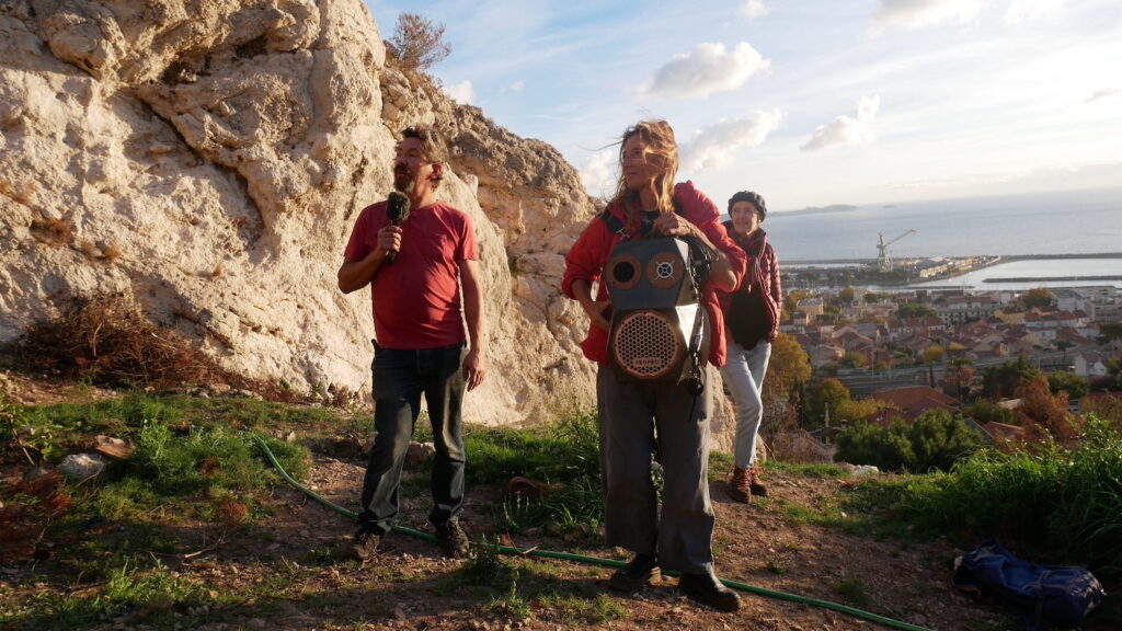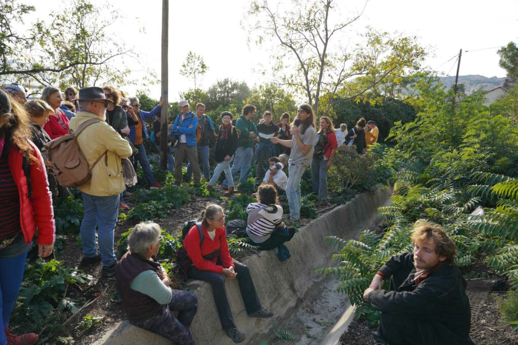 45 personnes sont au rendez-vous pour cette balade Pyros #2 au départ du Parc de la Minerve. En compagnie des chercheur·ses Véronique Mure (botaniste méditerranéenne), Garance Maurer (artiste), Élise Boutié (anthropologue), Alexis Feix (paysagiste), nous allons rencontrer des riverain·es avec cette question : Comment jardiner la lisière ? Voici quelques extraits des conversations que nous avons eues en chemin…