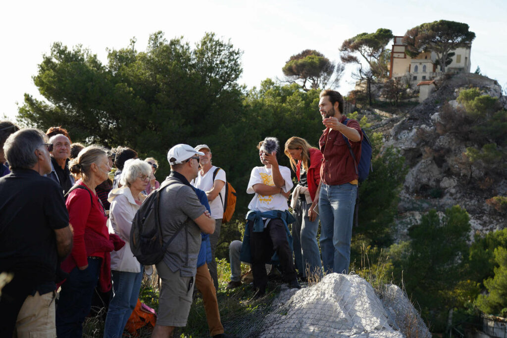 Depuis le Parc de la Minerve, nous traversons la voie ferrée et montons sur un point de vue sur le Vallon du Marinier. L’occasion pour Alexis Feix d’improviser un commentaire sur le paysage.