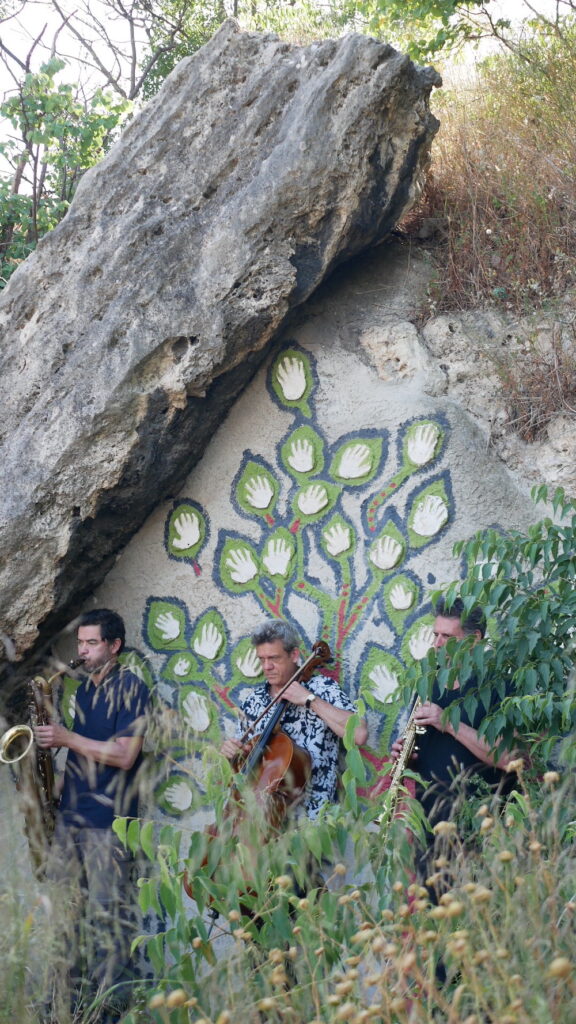 Depuis quelques années, le Bureau des guides du GR2013 et l’ensemble de musique improvisée Grand8 se retrouvent parfois sur les chemins en jouant joyeusement avec les paysages et leurs acoustiques.